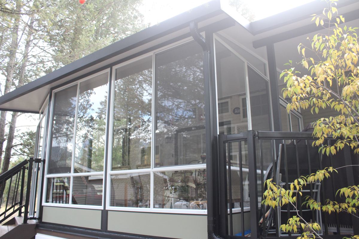 This 3 Season Glass Room in Dutchcreek, AB, combined black and white features to create a stylish finish that compliments the house. The client chose to use insulated panels in the roof increasing the R-value.