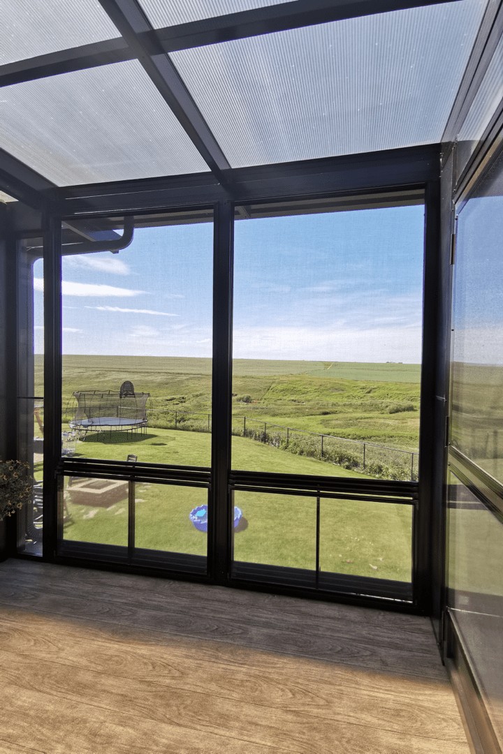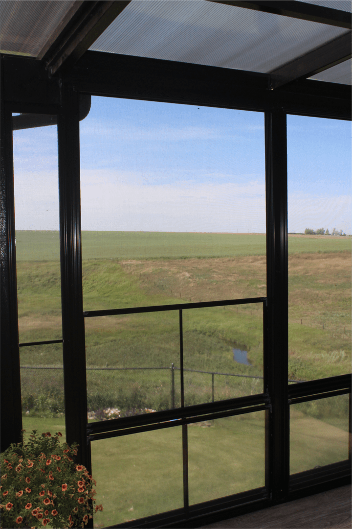 When you have a view like these you don’t want to lose them. 90% screen and vinyl 4 track windows don’t block them. Have the best of both worlds, a patio to enjoy your land without dealing with winds and bugs.