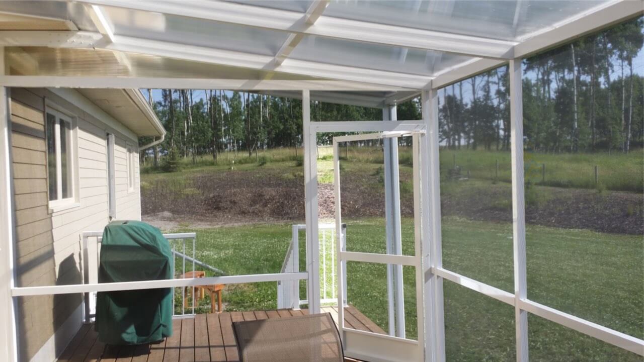 No need to run out and cover your beautiful patio furniture every time the weather turns. Screen rooms reduce the sun, wind, rain and snow from reaching your furniture. Certain polycarbonate roof panels include UV protection to reduce the effect of harmful rays on your furniture, and you, and your pets.