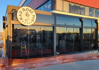 Mad Rose Pub in Calgary, AB, has transformed their patio into a stylish and weatherproof place to relax and enjoy a meal come rain or shine. The sliding glass system can open up to maximize those beautiful warm days and easily slide shut when the weather turns.