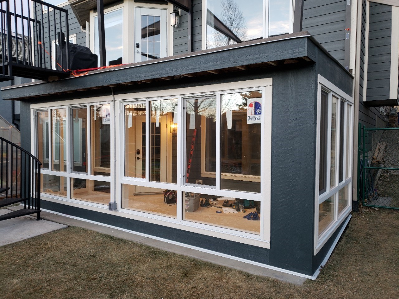 A 4 season sunroom is a double pane glass addition you can enjoy year round. For sunrooms in Calgary & Southern Alberta using double pane windows, insulated walls and floors allows for a space that provides a beautiful addition to your home bringing the best aspects of the outdoors indoors. Optional glass floor to ceiling with screens to allow airflow on hot summer days.
