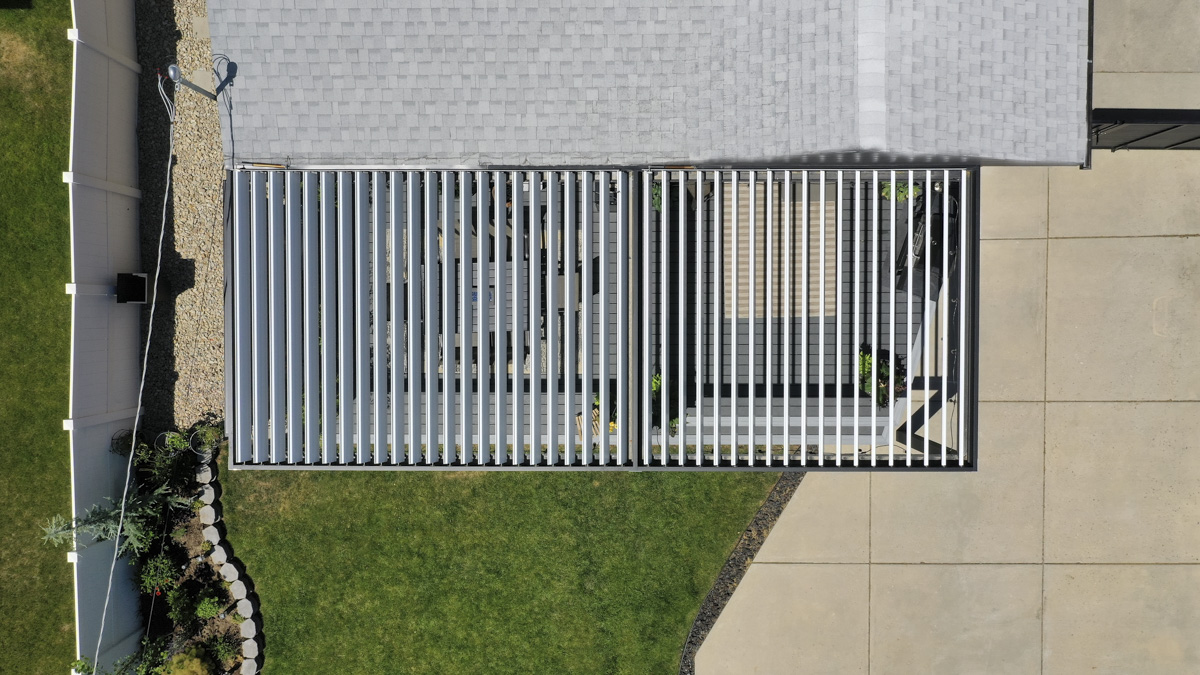 A louvered roof is an adjustable patio cover featuring horizontal slats, or “louvers,” that can be tilted to control sunlight, shade, and ventilation in your outdoor space.